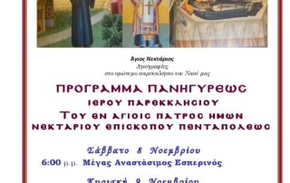 By Nikos Samolis|2025-11-02T21:32:06+02:002 Νοεμβρίου, 2025|Categories: Announcements, Ανακοινώσεις|Δεν επιτρέπεται σχολιασμός στο ΕΟΡΤΗ ΑΓΙΟΥ ΝΕΚΤΑΡΙΟΥ