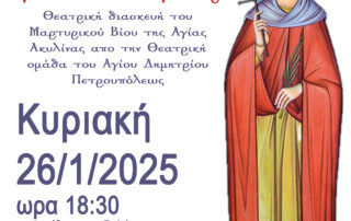 By Nikos Samolis|2025-01-10T15:41:58+02:0010 Ιανουαρίου, 2025|Categories: Announcements, Ανακοινώσεις|Δεν επιτρέπεται σχολιασμός στο ΘΕΑΤΡΙΚΗ ΠΑΡΑΣΤΑΣΗ
