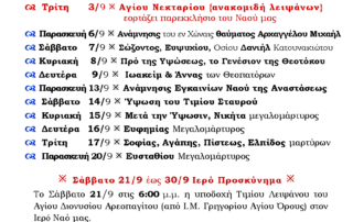Πρόγραμμα ιερών ακολουθιών και εκδηλώσεων για τον άγιο Διονύσιο τον Αεροπαγιτη