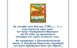 Αγρυπνία προς τιμήν των Αγίων Τεσσαράκοντα Μαρτύρων