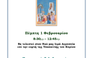 By Mimis Vasileiou|2024-01-30T15:54:12+02:0030 Ιανουαρίου, 2024|Categories: Ανακοινώσεις|Δεν επιτρέπεται σχολιασμός στο Αγρυπνία Υπαπαντής