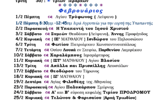 Πρόγραμμα Ιανουαρίου – Φεβρουαρίου