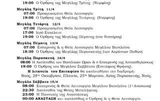 Πρόγραμμα Ακολουθιών Μεγάλης Εβδομάδας