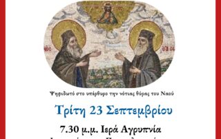 By Nikos Samolis|2025-09-18T20:29:09+03:0018 Σεπτεμβρίου, 2025|Categories: Announcements, Ανακοινώσεις|Δεν επιτρέπεται σχολιασμός στο ΙΕΡΑ ΑΓΡΥΠΝΙΑ ΑΓΙΟΥ ΣΙΛΟΥΑΝΟΥ