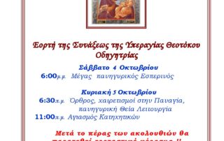 By Nikos Samolis|2025-09-29T11:52:19+03:0029 Σεπτεμβρίου, 2025|Categories: Announcements, Ανακοινώσεις|Δεν επιτρέπεται σχολιασμός στο ΣΥΝΑΞΙΣ ΠΑΝΑΓΙΑΣ ΟΔΗΓΗΤΡΙΑΣ