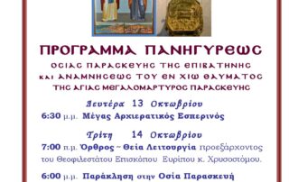 By Nikos Samolis|2025-10-09T08:04:55+03:008 Οκτωβρίου, 2025|Categories: Announcements, World, Ανακοινώσεις|Δεν επιτρέπεται σχολιασμός στο ΕΟΡΤΗ ΑΓΙΑΣ ΠΑΡΑΣΚΕΥΗΣ ΕΠΙΒΑΤΗΝΗΣ