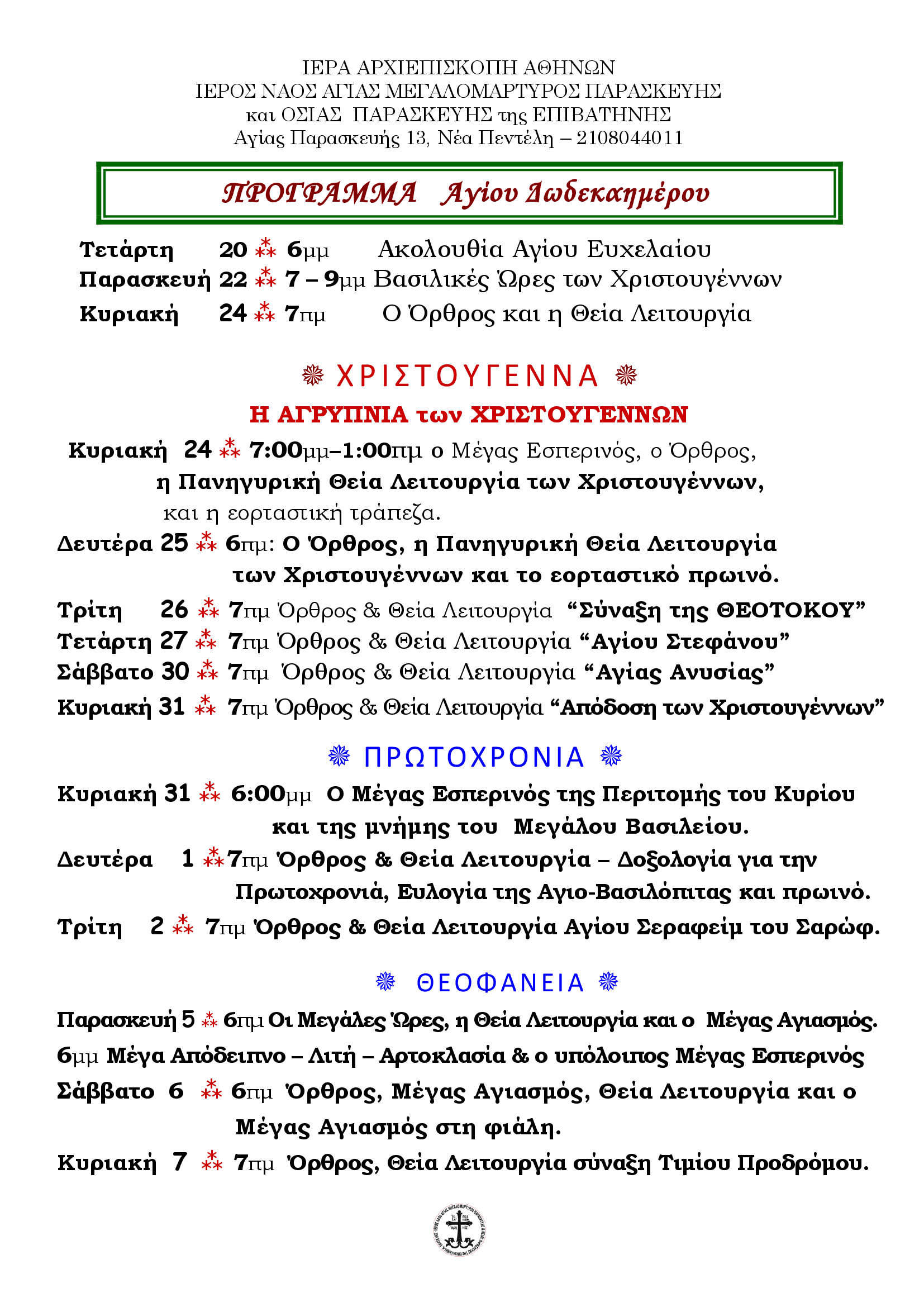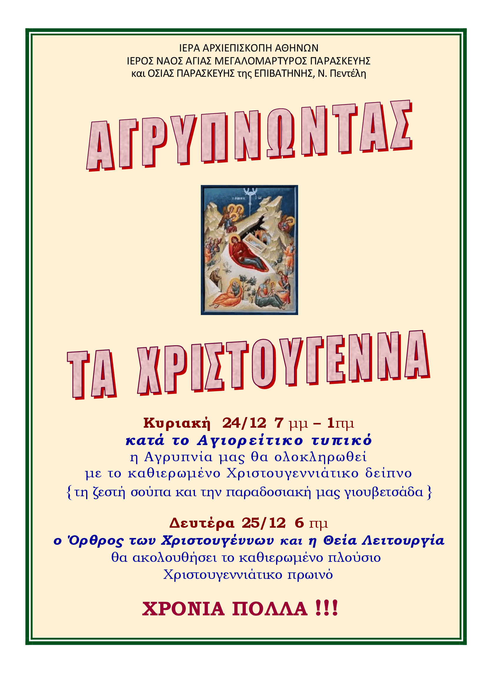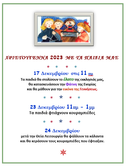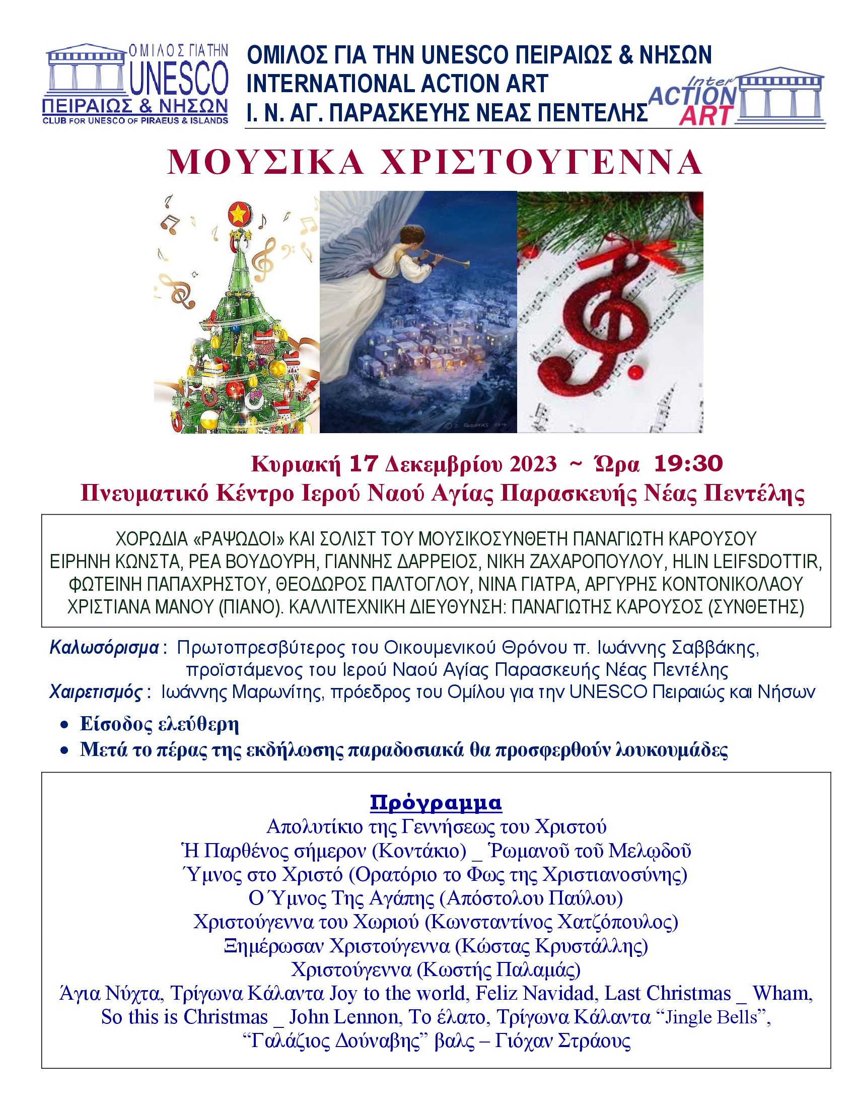 Μουσικά Χριστούγεννα Ανακοινώσεις Μουσικά Χριστούγεννα Tο βράδυ της συναυλίας ας συνεισφέρουμε στην προσπάθεια της Ενορίας [...] Περισσότερα
