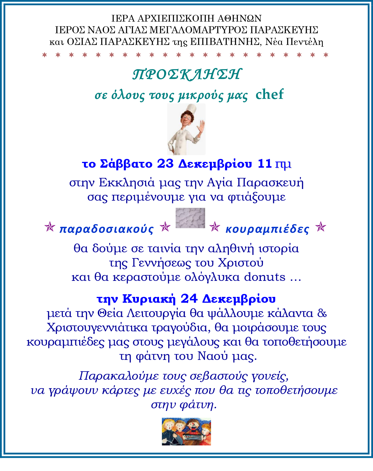 Πρόσκληση σε όλους τους μικρός μας chef Ανακοινώσεις Πρόσκληση σε όλους τους μικρός μας chef Περισσότερα