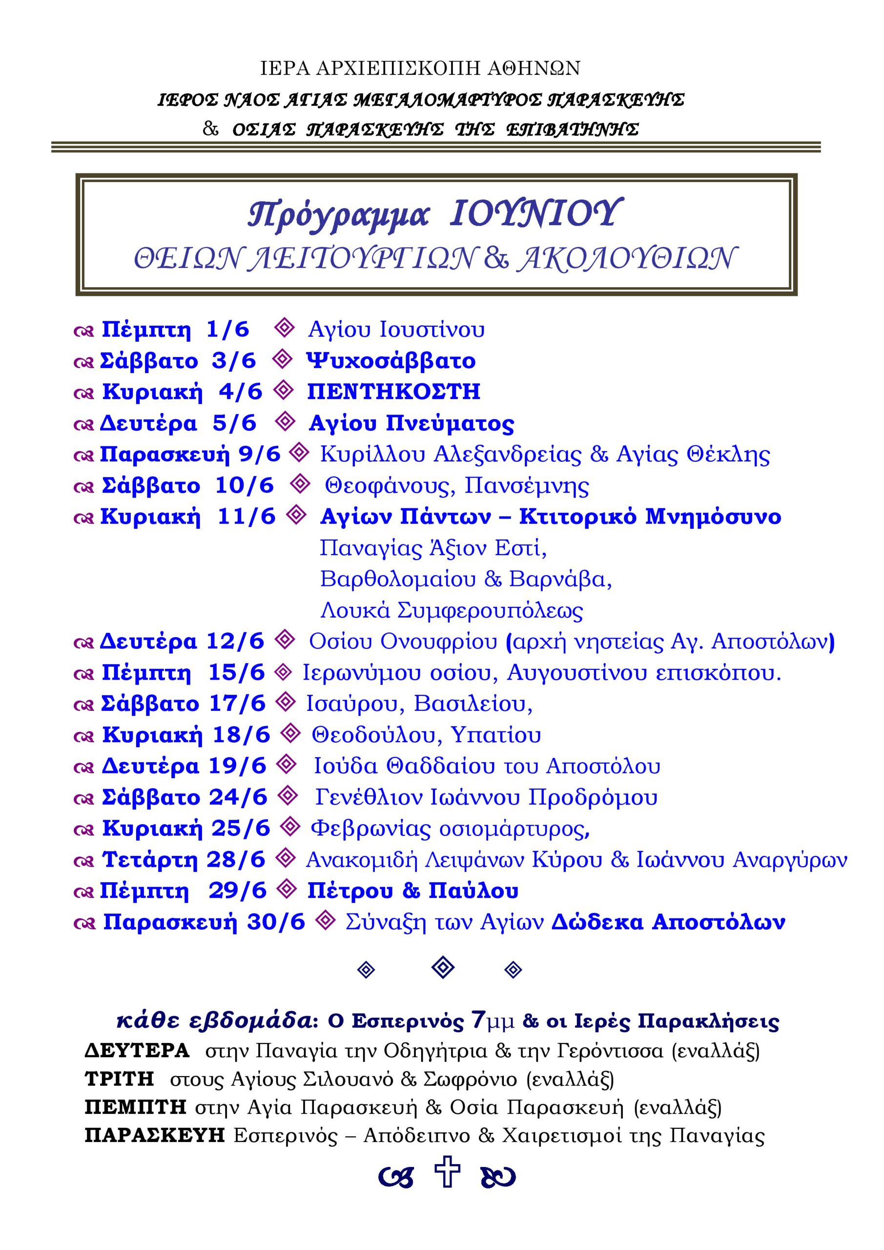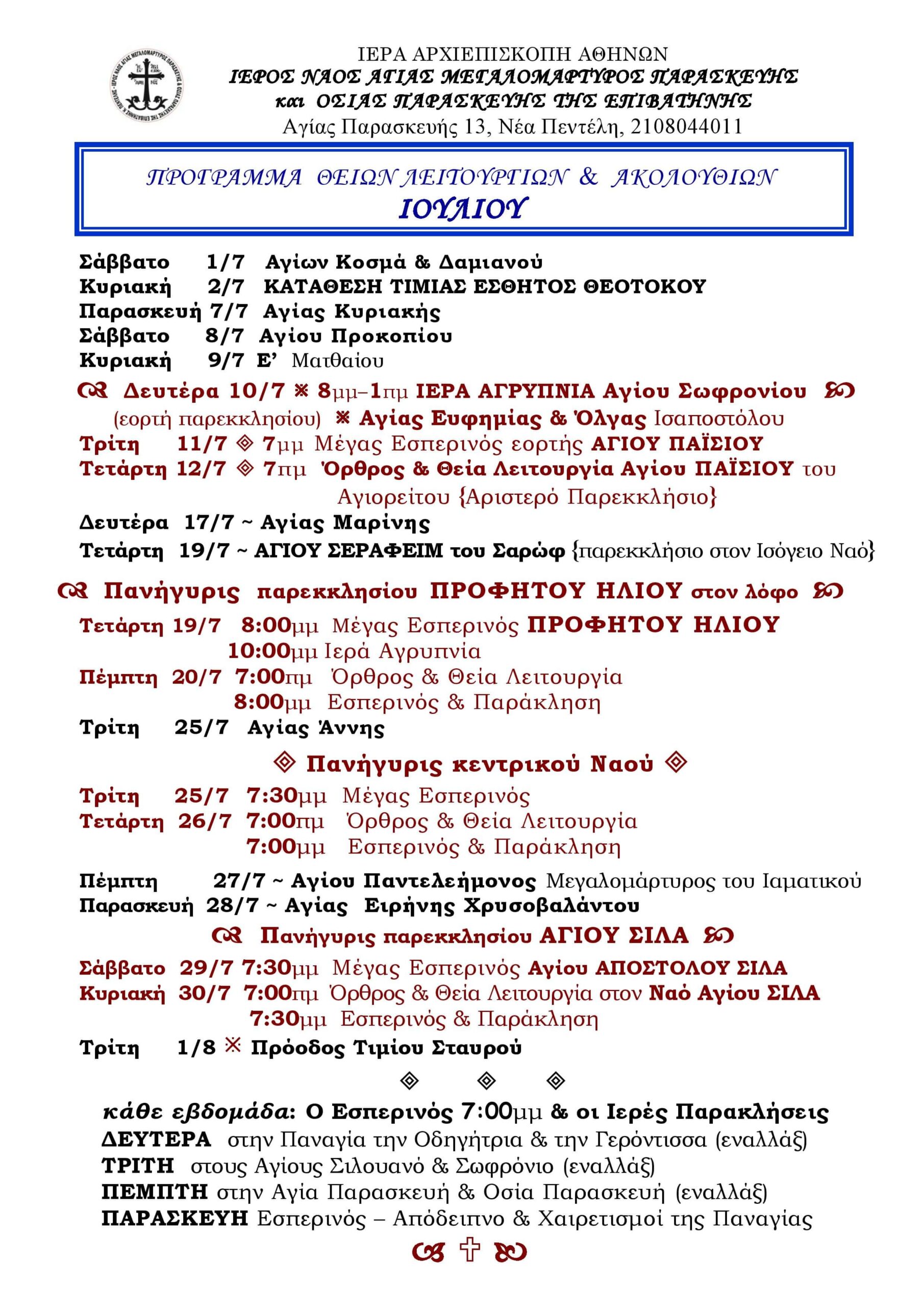 Πρόγραμμα Ναού Ιουλίου Θείων Λειτουργιών & Ακολουθιών Ανακοινώσεις Πρόγραμμα Ναού Ιουλίου Θείων Λειτουργιών & Ακολουθιών Περισσότερα
