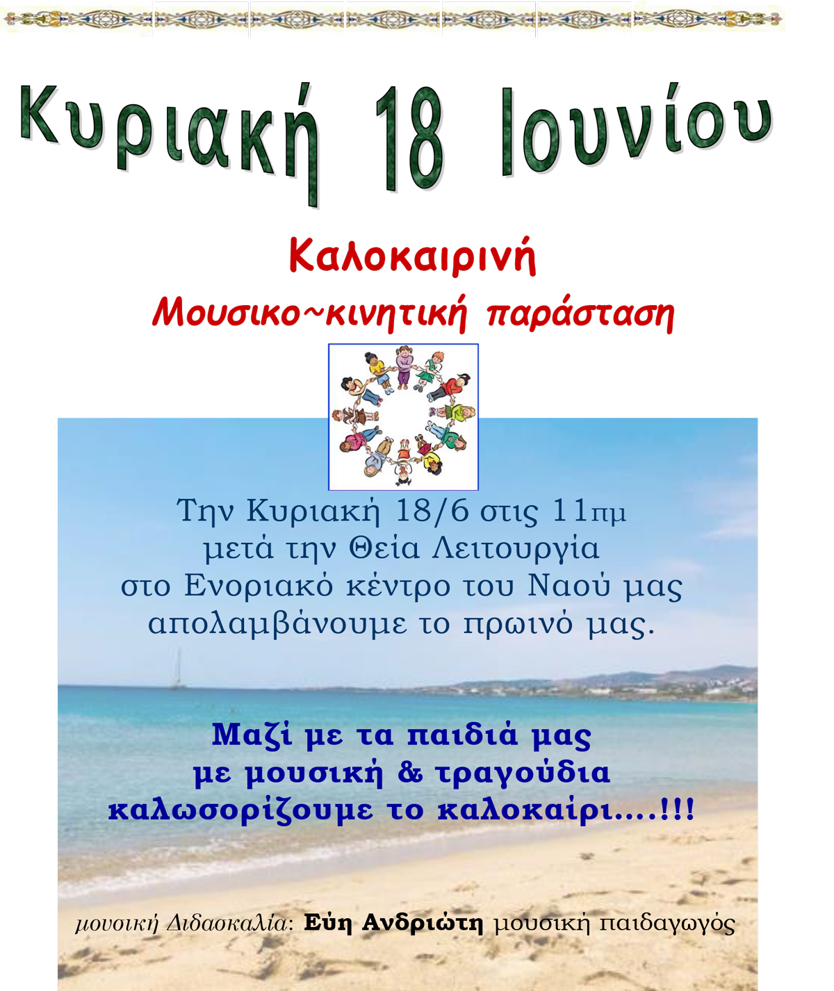 Καλοκαιρινή Μουσικο-κινητική παράσταση Ανακοινώσεις Καλοκαιρινή Μουσικο-κινητική παράσταση Περισσότερα