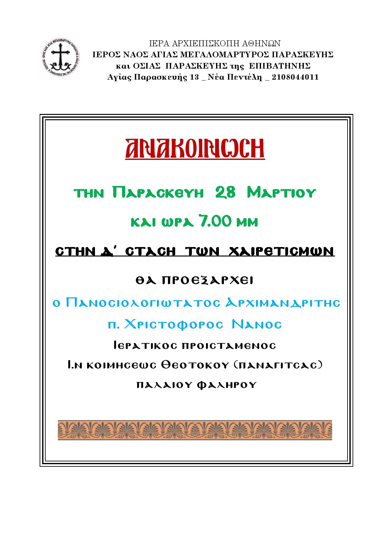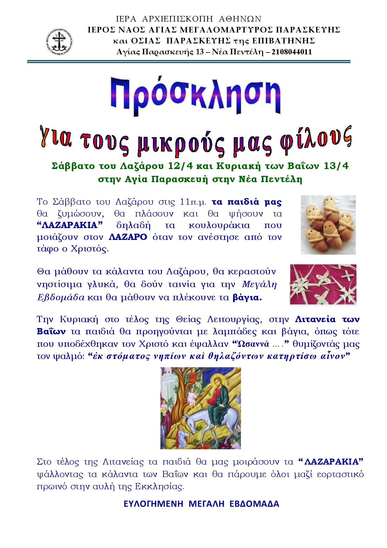 ΓΙΟΡΤΗ ΚΑΤΗΧΗΤΙΚΟΥ -ΛΑΖΑΡΑΚΙΑ-ΚΥΡΙΑΚΗ ΒΑΙΩΝ Announcements, Ανακοινώσεις ΓΙΟΡΤΗ ΚΑΤΗΧΗΤΙΚΟΥ -ΛΑΖΑΡΑΚΙΑ-ΚΥΡΙΑΚΗ ΒΑΙΩΝ Περισσότερα