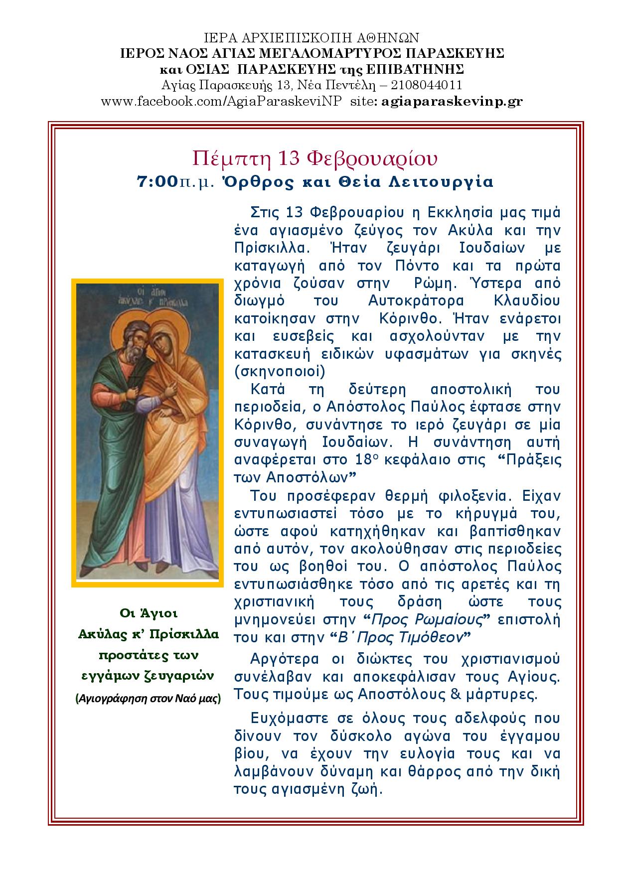 ΕΟΡΤΗ ΑΓΙΩΝ ΑΚΥΛΑ & ΠΡΙΣΚΙΛΛΑΣ Announcements, Ανακοινώσεις ΕΟΡΤΗ ΑΓΙΩΝ ΑΚΥΛΑ & ΠΡΙΣΚΙΛΛΑΣ Περισσότερα