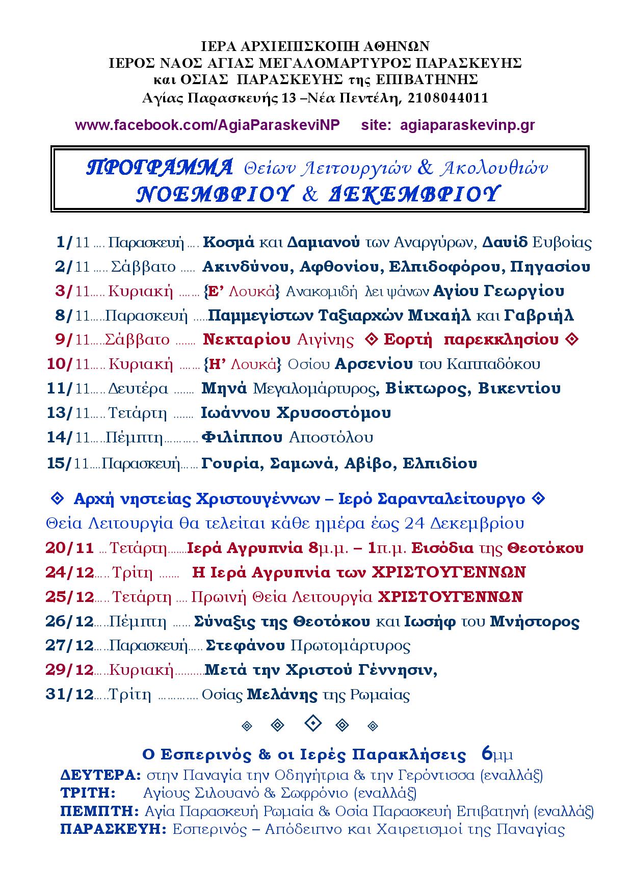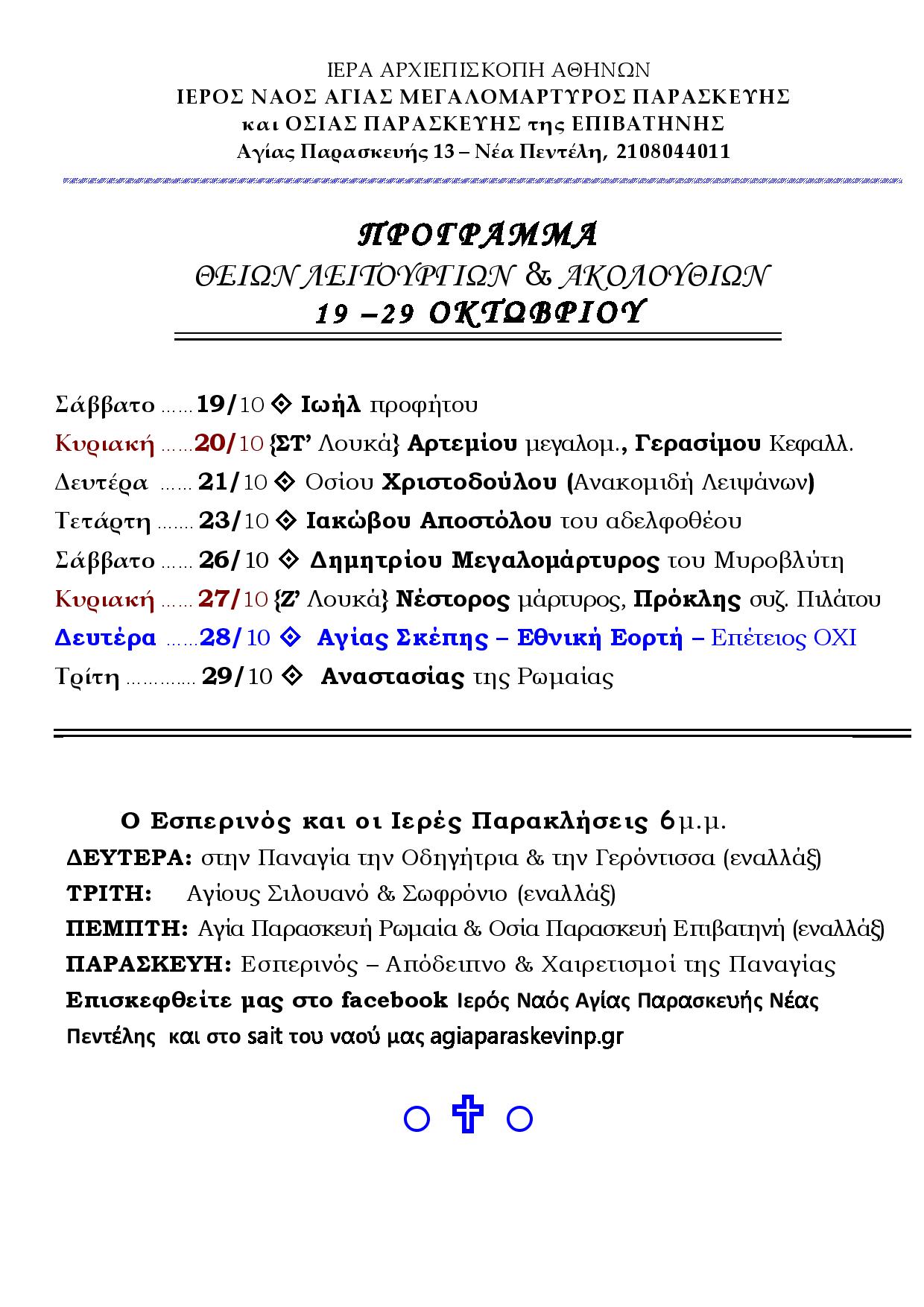 Πρόγραμμα ιερών ακολουθιών και εκδηλώσεων για τον άγιο Διονύσιο τον Αεροπαγιτη Announcements, Ανακοινώσεις Πρόγραμμα ιερών ακολουθιών και εκδηλώσεων για τον άγιο Διονύσιο τον Αεροπαγιτη Περισσότερα