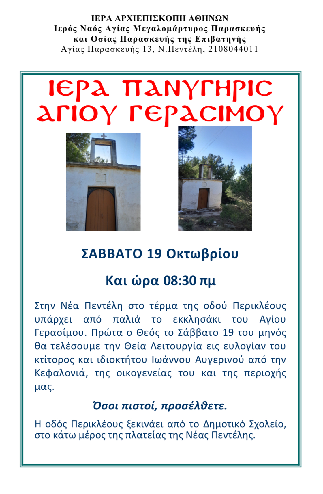 Ιερά Πανύγηρις Αγίου Γερασίμου Announcements, Ανακοινώσεις Ιερά Πανύγηρις Αγίου Γερασίμου Περισσότερα
